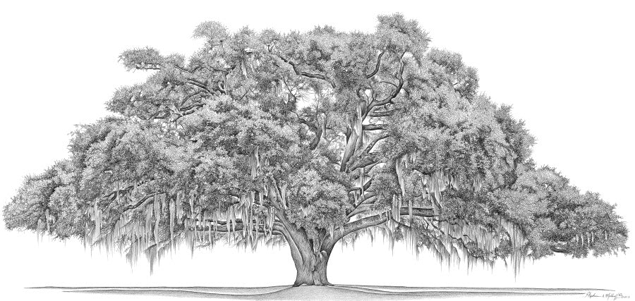When Stephen Malkoff took his artists pencil in hand he knew he was about to capture both a magnificent live oak and one of the most remarkable trees in North America. Reputed to be well over 600 years old, The Old Senator was there during the that dramatic moment in 1513 when Juan Ponce de Leon finally discovered Saint Augustine's famed Fountain of Youth, a mere 600 feet from the tree.