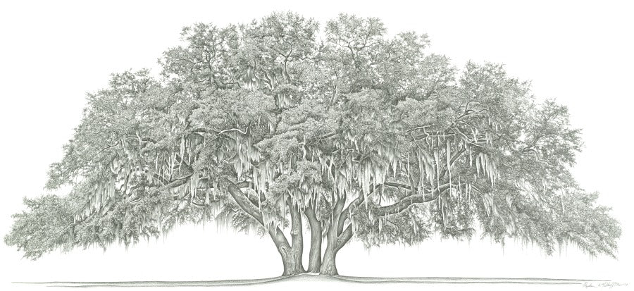 During his visits to Brunswick in the 1870's Lanier frequently sat beneath this live oak tree and looked out over "a world of marsh that borders a world of sea." Here he received the inspiration to many of his finest poems. It served as well as inspiration to nature artist Stephen Malkoff.
